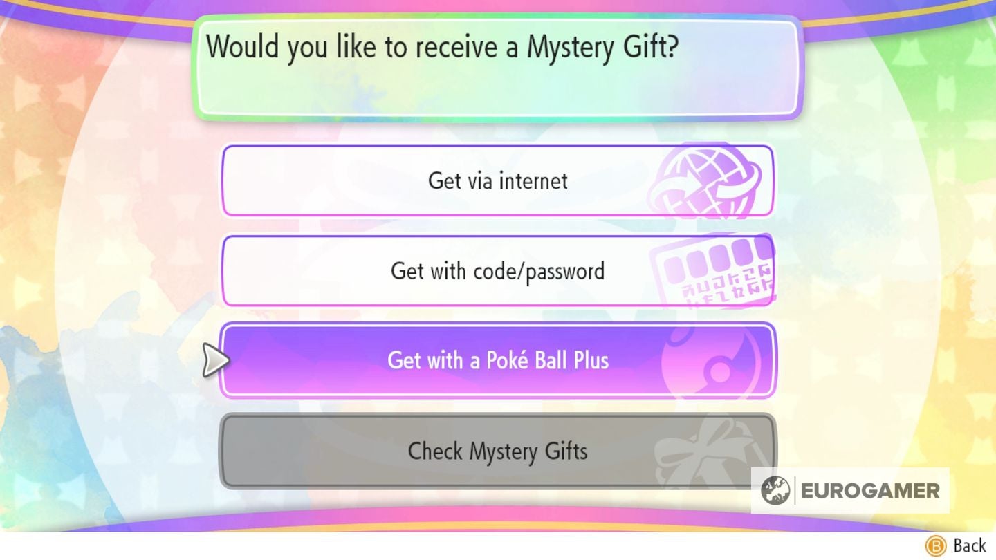 3. Select 'Go with a Poké Ball Plus' rom the Mystery Souvenir menu, and and then accept the ii prompts about whether you'd like to receive it, and whether it's okay to connect to the internet.